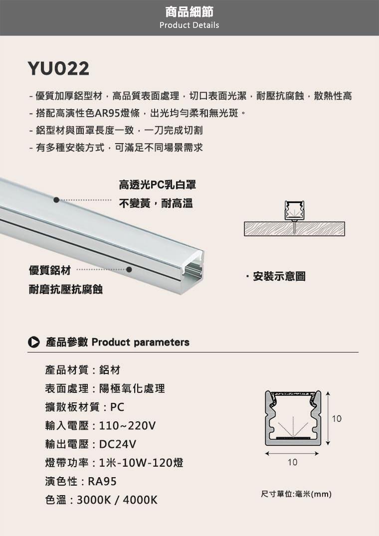 | ◼ 本產品鋁槽搭配PC燈罩、光源(24V LED-2835燈條),不包含配套的變壓器以及其他配件需另外購置。 |